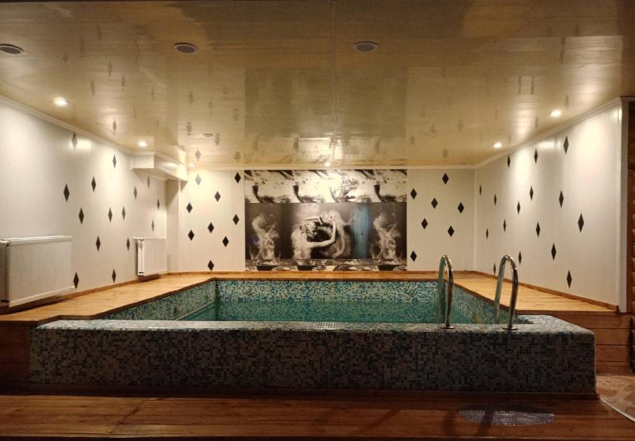 Есть веники, Парильщик, Парковка, Гостиная, Тапочки, Простыни, Полотенца, Халаты, Шампунь, Мыло, Мочалка, Посуда