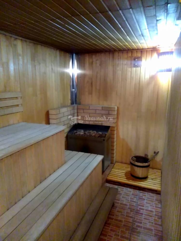 Парилка просторная, камни хорошо держат жар. Воздух сухой, дышать комфортно. После процедуры чувствуется легкость.